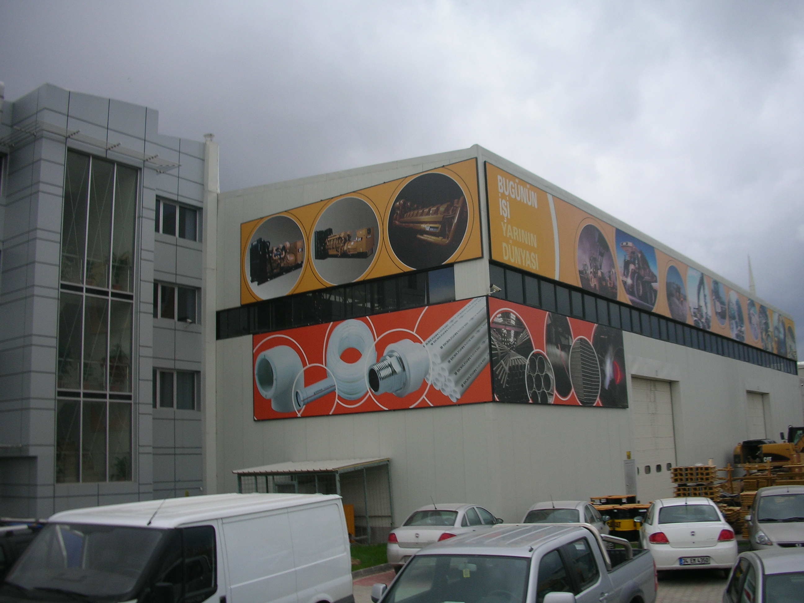 Aynı zamanda bina cephesine, satışa sunulan ürün ve yedek parçaların yer aldığı özel tasarım vinil branda kaplamalar uygulanmıştır. Bu cephe kaplamaları sayesinde hem ürün görünürlüğü artmış hem de şubenin dış cephesi dinamik ve estetik bir kimlik kazanmıştır.